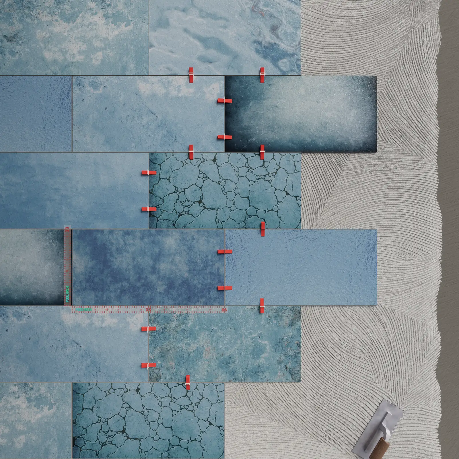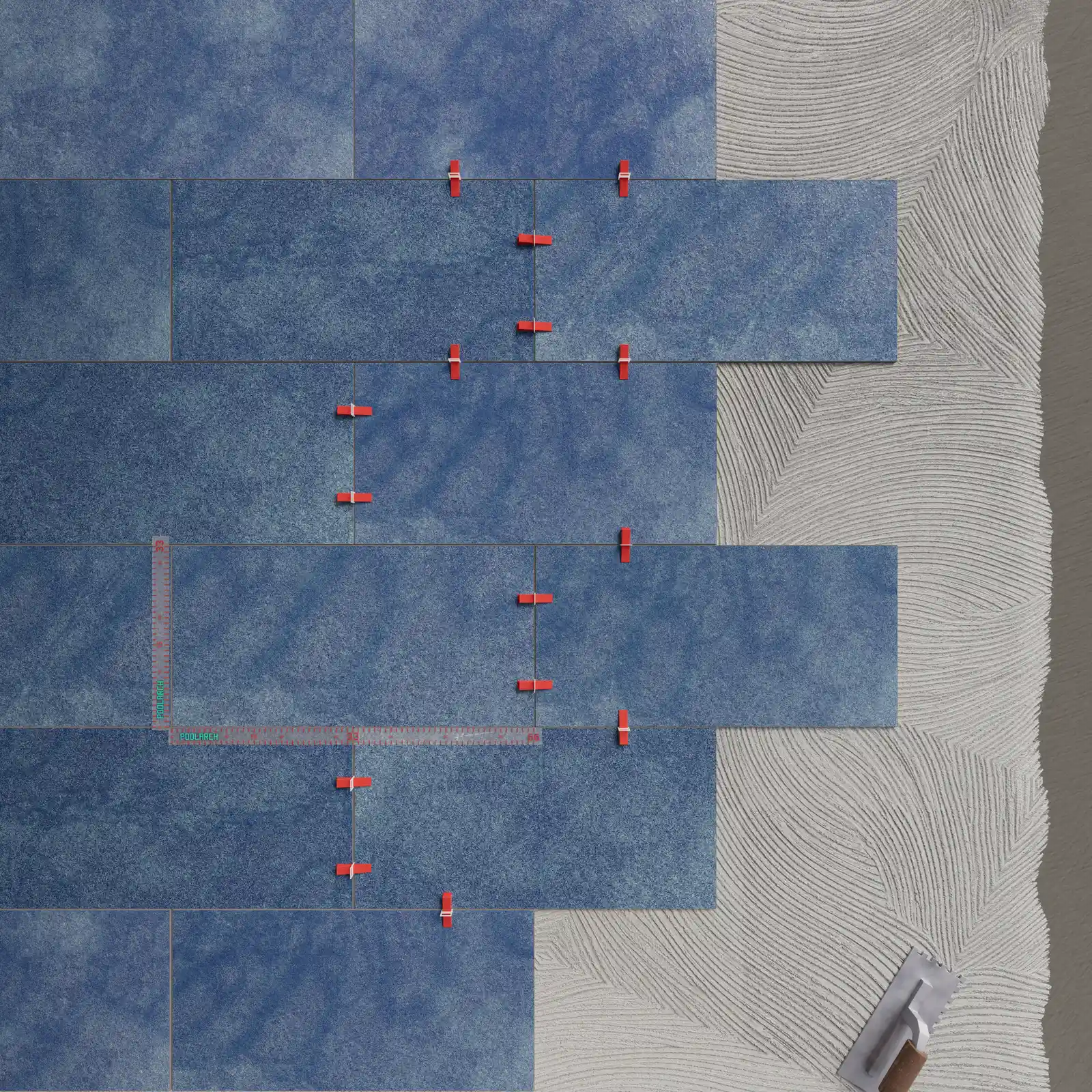 Blue is the color that shows the highest harmony with the natural physics of water. According to the principles of light refraction, blue surfaces enhance the perception of depth while reinforcing the feeling of cleanliness and coolness. When using a porcelain-based blue pool tile, the material’s near-zero water absorption makes the play of light underwater sharper and clearer. Let’s take a closer look at the 7 most preferred models in the Poolarch collection.