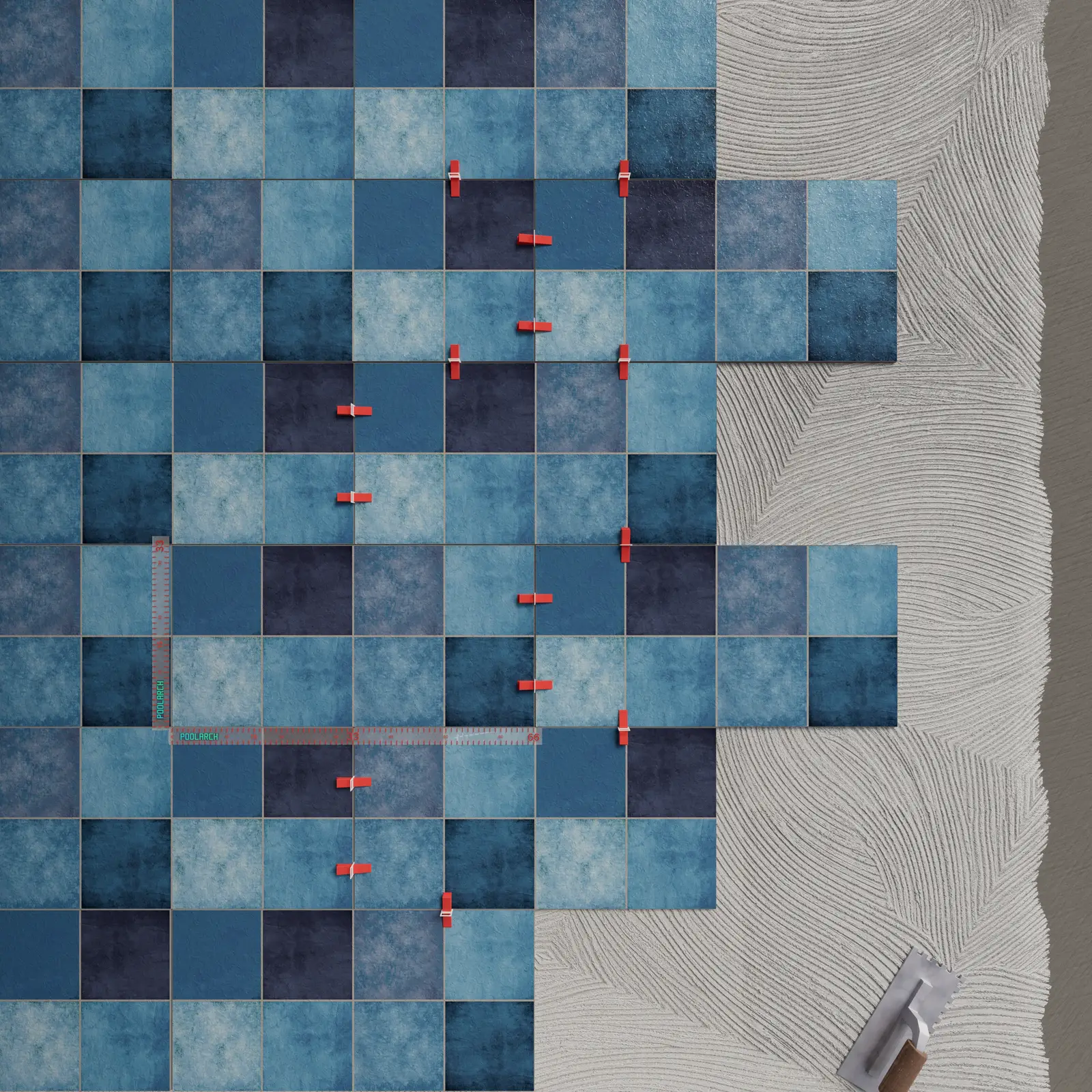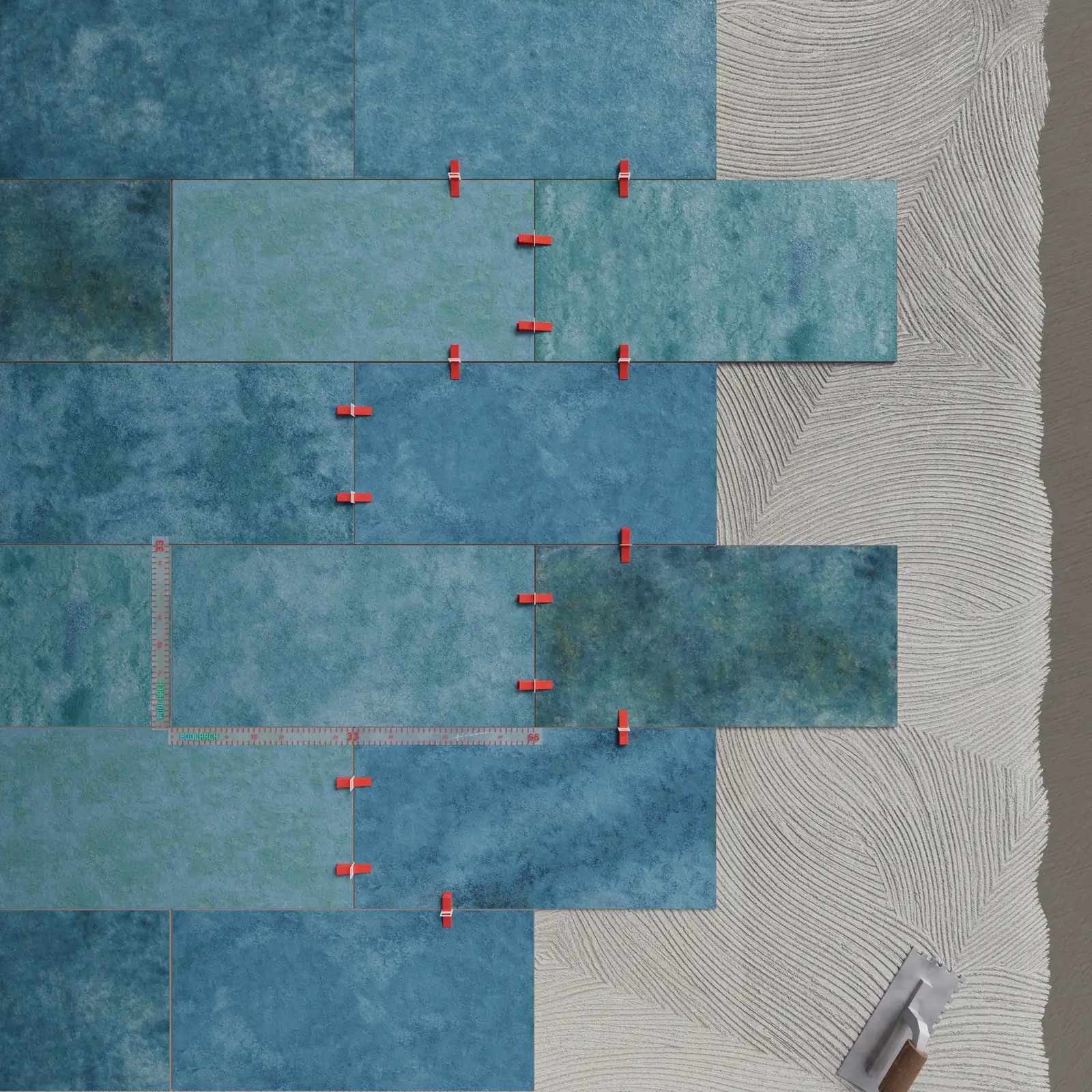 To ensure your chosen blue pool tile model achieves its full potential, grout selection is critical. For blue-toned tiles, epoxy grouts in light gray or the tile’s own shade are generally preferred. Using epoxy grout prevents dirt accumulation on the pool floor, increasing hygiene while maintaining color continuity.