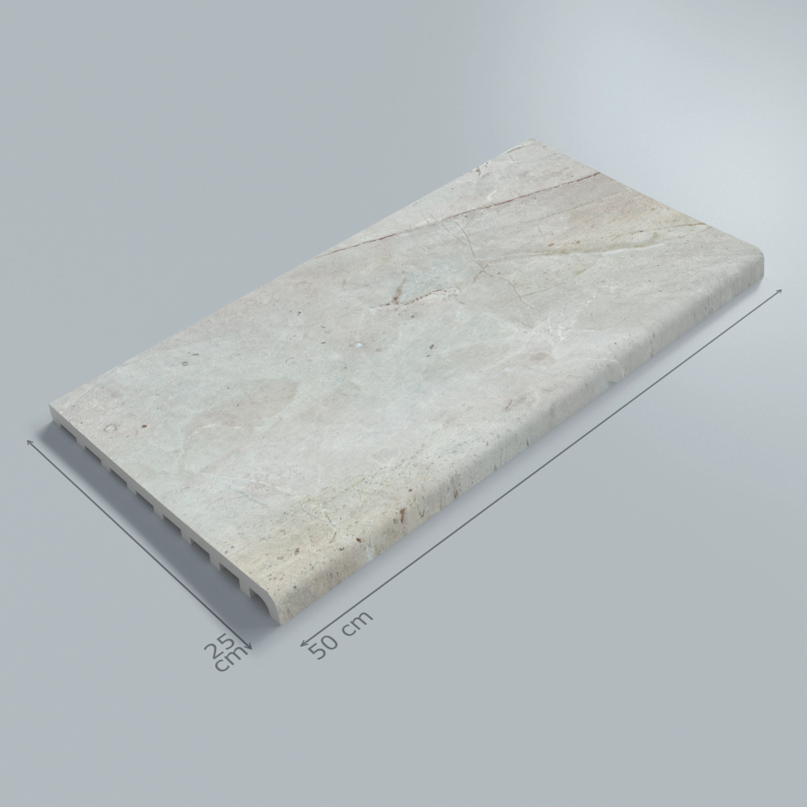 With a 45° PTV slip-resistance rating and a matte, anti-slip surface, it allows safe use on wet areas by reducing the risk of slipping. The chamfered front edge avoids sharp transitions, helping minimize the risk of injury caused by impact. Available in a 25×50 cm size, the Beige Stone Flat porcelain pool coping is a reliable solution that combines minimal design, safety, and durability.