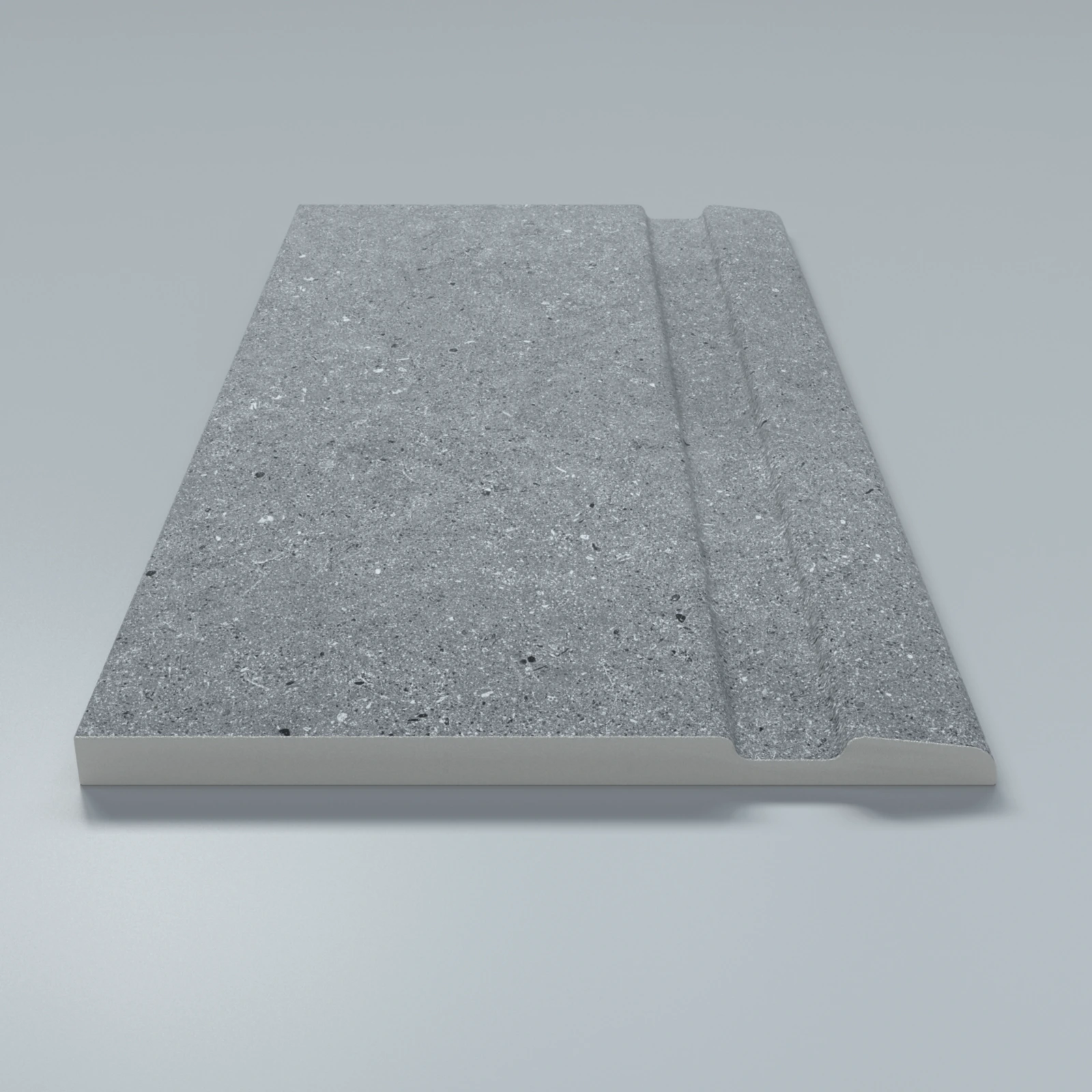 Its 100% porcelain body provides high durability while offering a solid grip that supports swimmers when entering or exiting the pool safely. The matte, slip-resistant surface ensures controlled use on wet areas, supported by a 45° PTV slip resistance rating. The chamfered front edge detail helps reduce the risk of injury caused by impact.