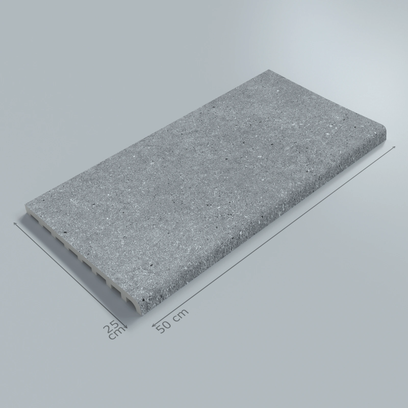With a 45° PTV slip-resistance rating and a matte, anti-slip surface, it allows safe use on wet areas by reducing the risk of slipping. The chamfered front edge avoids sharp transitions, helping minimize the risk of injury caused by impact. Available in a 25×50 cm size, the Cement Grey Flat porcelain pool coping is a reliable solution that combines minimal design, safety, and durability.