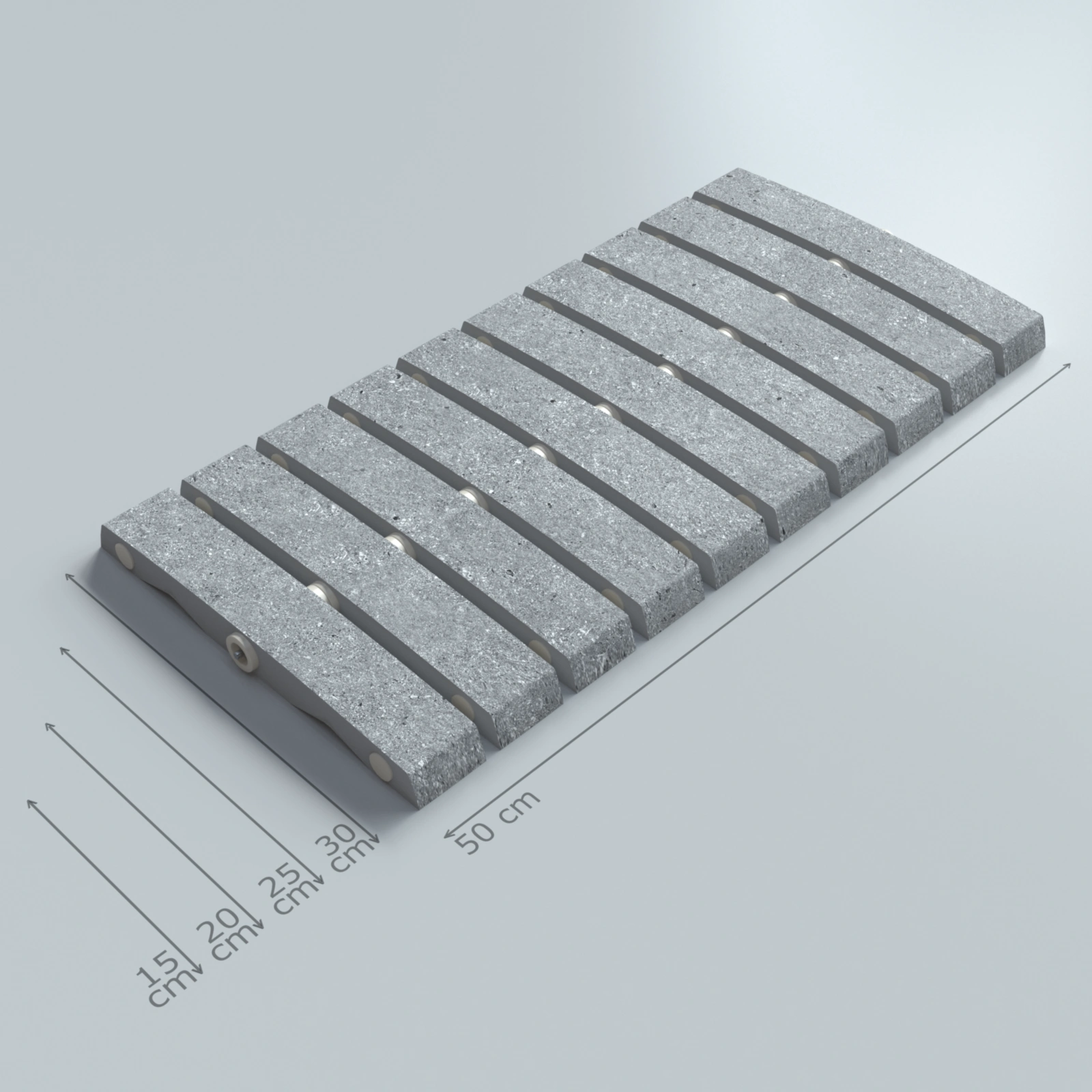 The Cement Grey porcelain flex grate is a specially designed drainage solution that easily adapts to pools with various shapes thanks to its portable and flexible structure. It is particularly suitable for circular and curved pool designs, offering both ease of installation and visual continuity. Its natural stone–look porcelain surface adds timeless elegance and functionality to pool surroundings.