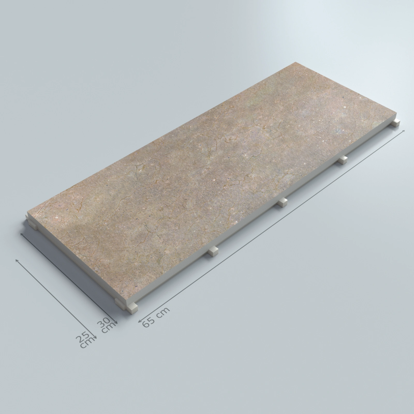 Made of 100% porcelain, it offers significantly higher durability and longevity compared to plastic grates. Designed in 25×65 cm and 30×65 cm dimensions for flat pool applications, it provides high resistance to temperature fluctuations and outdoor conditions. With a PTV 45 slip-resistance rating and a matte, textured surface, it ensures safe use on wet areas by minimizing slipping and falling risks.