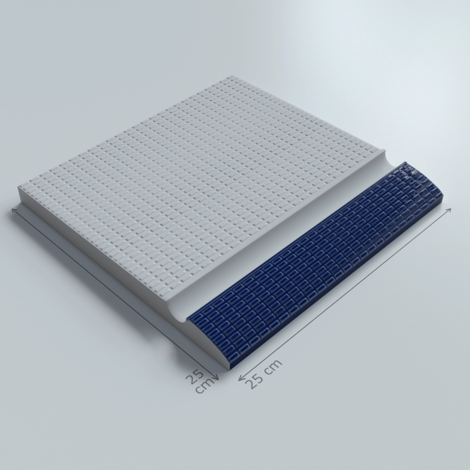By combining a pool coping element and a slip-resistant surface into one product, this premium porcelain pool coping ensures ease of application and user convenience. The Petit Carré textured surface with minimal joint gaps helps prevent bacteria and dirt accumulation, offering a hygienic and easy-to-clean solution. Its low-maintenance surface makes it ideal for both professional facilities and private pool projects.