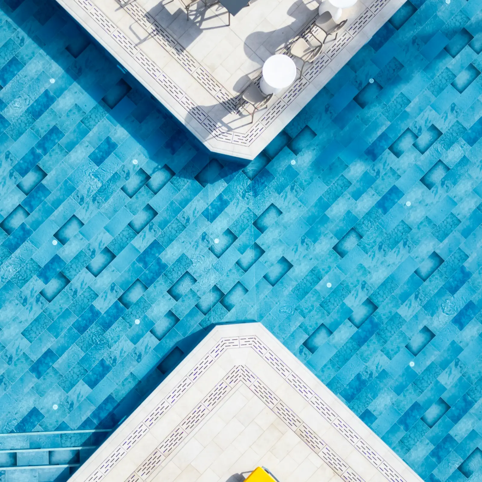 Mimarlar ve iç mimarlar için bu parlak mavi doku, yaratıcılığın sınırlarını zorlayan bir malzemedir. Sadece havuz içinde değil; spa alanlarında, termal havuzlarda ve dekoratif ıslak hacim duvarlarında fark yaratmak için kullanılabilir.