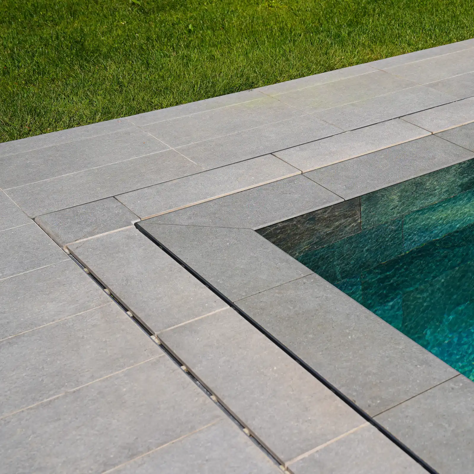 Bu üstün yapı, kış aylarında malzemenin gözeneklerine sızıp donan suyun genleşerek çatlama yapmasını veya yüzey katmanının zamanla pul pul dökülmesini kesinlikle engeller. %100 porselen yapı, malzemenin güneşin en yoğun UV ışınları altında dahi orijinal gri tonlarını ve beton dokusunu muhafaza etmesini sağlar. Solma, matlaşma veya klor gibi havuz kimyasallarına bağlı aşınmalar bu özel porselen teras kaymazları koleksiyonunda asla yaşanmaz; malzeme on yıllar boyunca ilk günkü endüstriyel karakterini korur.