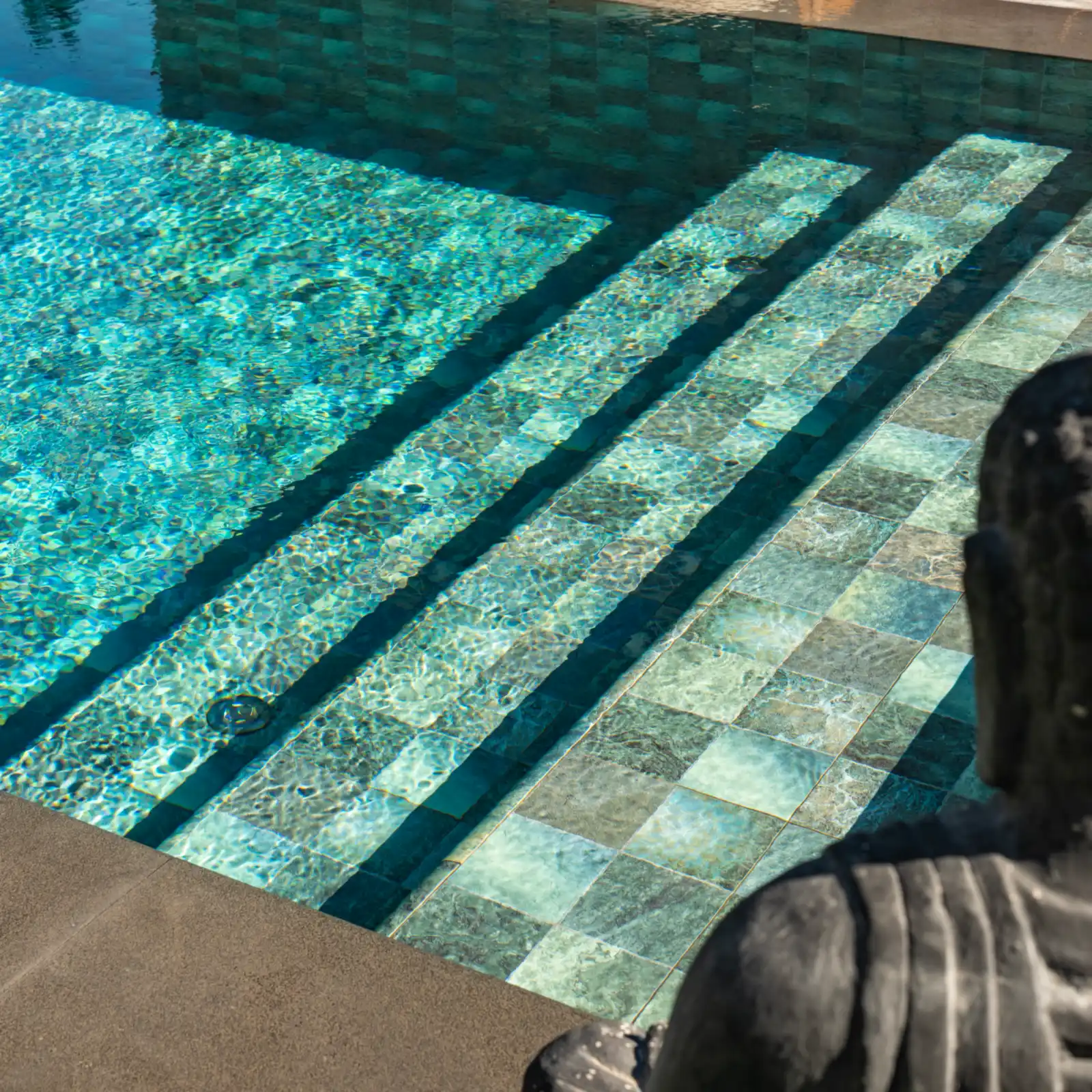 Uçsuz bucaksız doğal lagünleri çağrıştıran yapısıyla bu özel plakalar, yüzme keyfinizi artırırken kendinizi doğanın kalbinde hissetmenizi sağlar. Güneş ışınlarının porselen yüzeyle buluşmasıyla ortaya çıkan doğal parıltılar, havuzunuzun her saatte farklı bir görsel şölen sunmasına yardımcı olur. Estetik ve doğallık hissi, bu tasarımın temel felsefesini oluşturur.